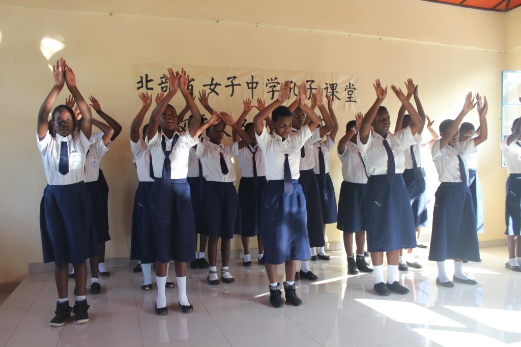 图三 北部省女子中学孔子课堂学员表演手语舞蹈《感恩的心》