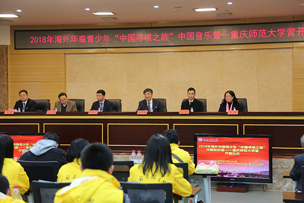 重庆市委统战部杨副部长在开营仪式上宣布音乐营开营。他对我校积极承办音乐营项目表示感谢,对参加此项活动的领队和营员表达了亲切的问候,他希望同学们深刻感受祖籍国的发展变化、感受重庆的人文地域特点并向所在国介绍当代中国。