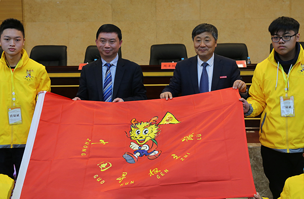 最后,杨大庆副部长和周泽扬校长为音乐营授旗。