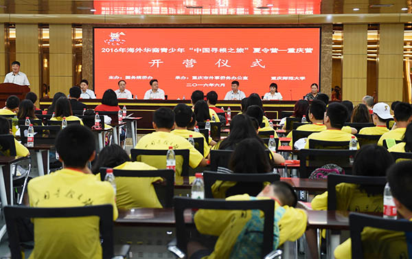 2016年6月16日上午,由国务院侨办主办、重庆市外事侨务办公室与我校共同承办的2016年海外华裔青少年“中国寻根之旅”夏令营—重庆营开营仪式在我校博雅楼会议厅举行。重庆市外事侨务办公室杨大庆副主任、我校周泽扬校长出席会议。来自美国、泰国、印尼等3个国家的101位营员和领队参加。开营式由我校华文教育基地办公室主任雷勇主持。