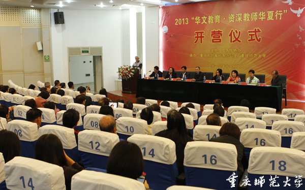 开营仪式在热烈而温馨的氛围下顺利结束。接下来,参加2013“华文教育·资深教师华夏行”的全体老师将在重庆进行为期12天的学习讲座、交流座谈和参观访问活动。