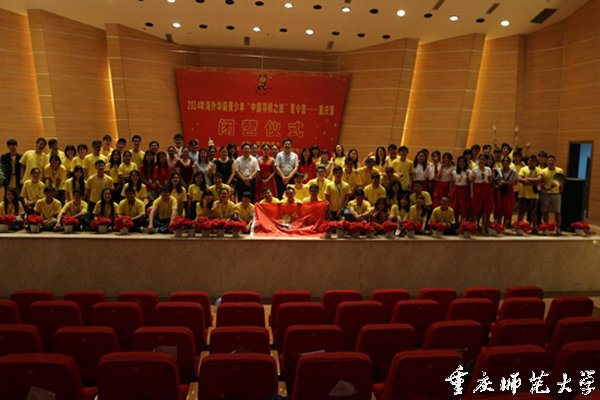 7月8日,由国务院侨办主办,重庆市外事侨务办公室与我校共同承办的2014年海外华裔青少年“中国寻根之旅”夏令营——重庆营闭营仪式在我校校友会堂音乐厅举行。重庆市外事侨务办公室唐文副主任、市外侨办新闻文化处王燕副处长、mansion88主页华文教育基地雷勇主任等领导出席。闭营仪式由我校华文教育基地办公室副主任王晓敏主持。
