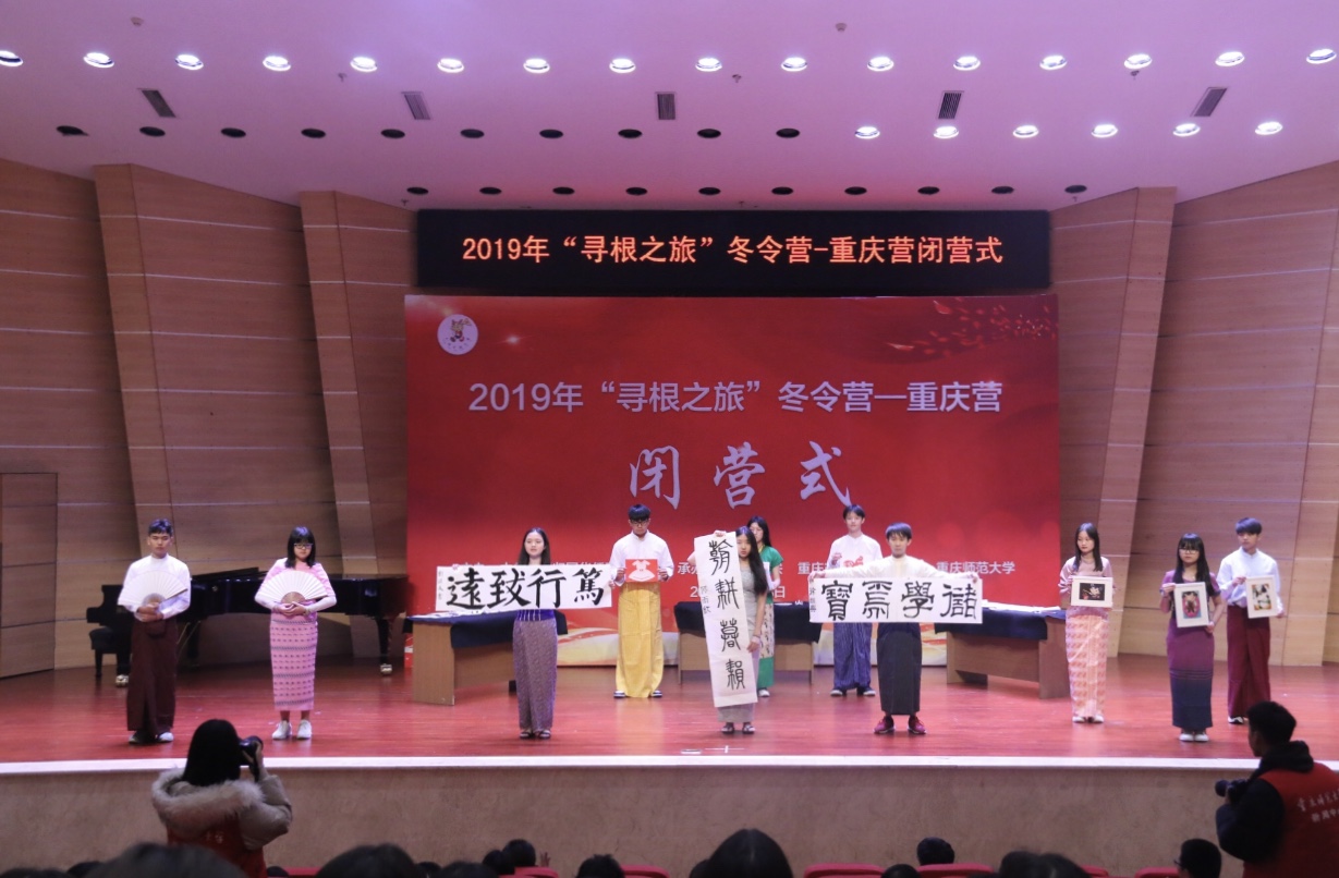 12月19日下午,由中华全国归国华侨联合会主办,重庆市侨联和市侨办承办、mansion88主页协办的2019年“寻根之旅”冬令营-重庆营闭营仪式在校友会堂音乐厅顺利举行。