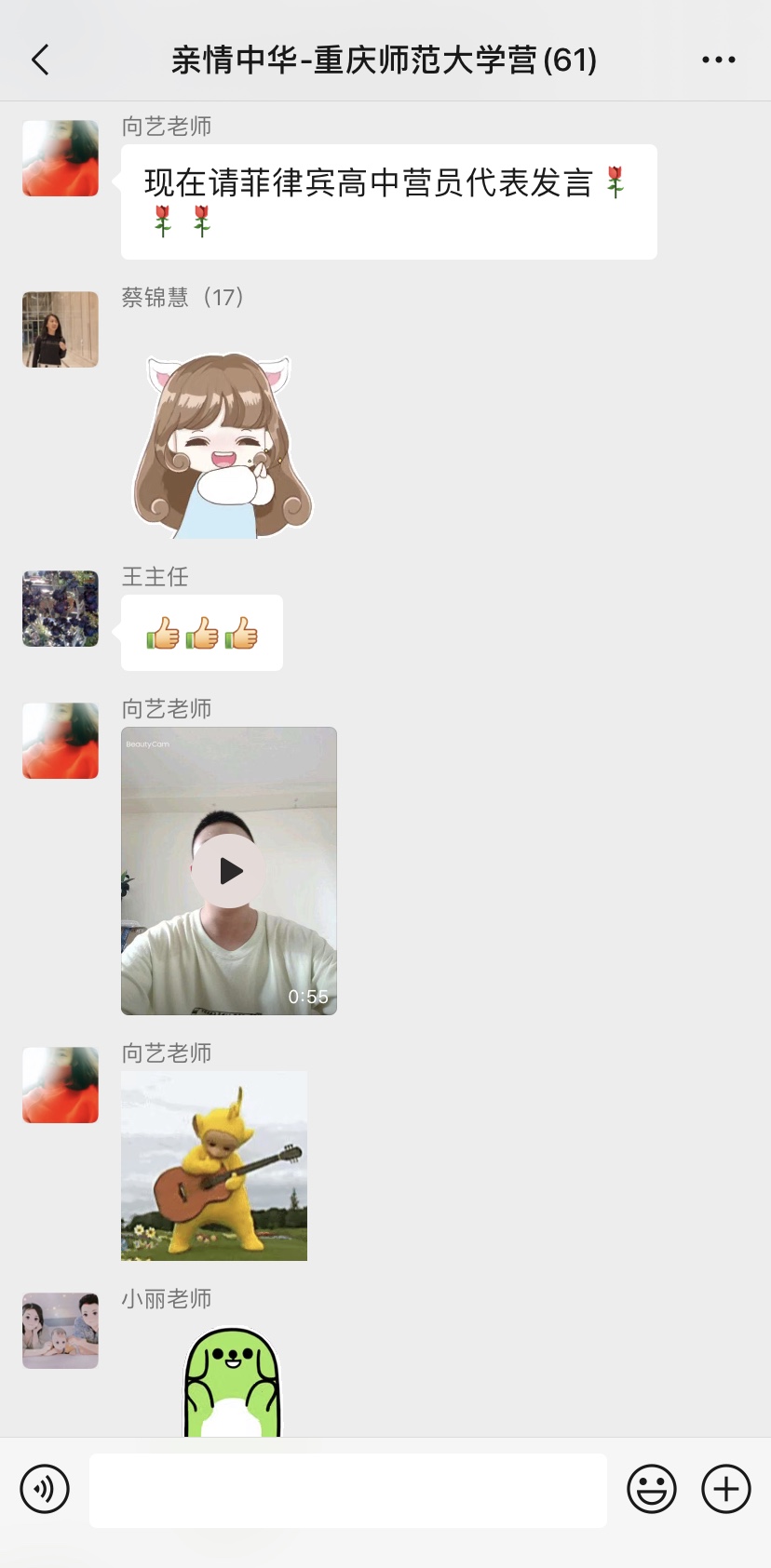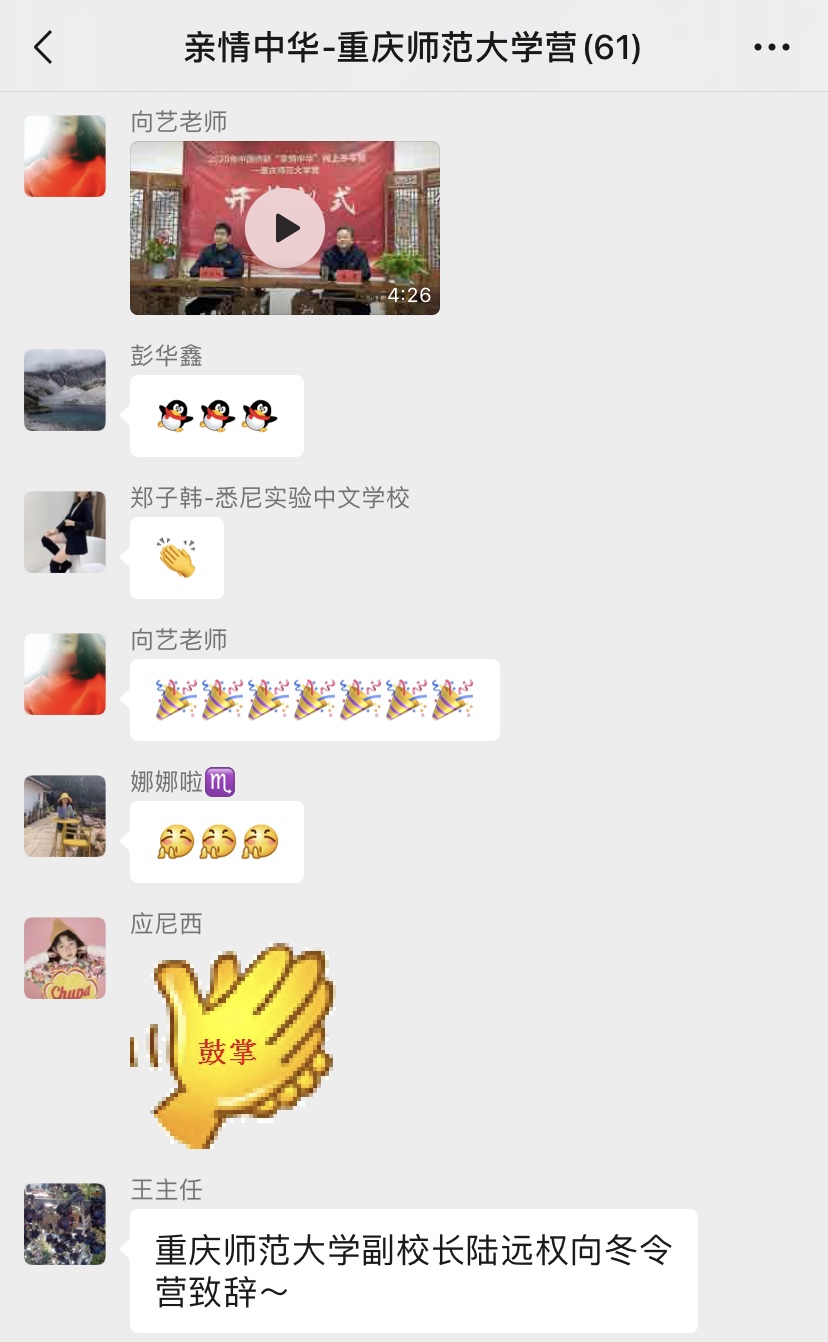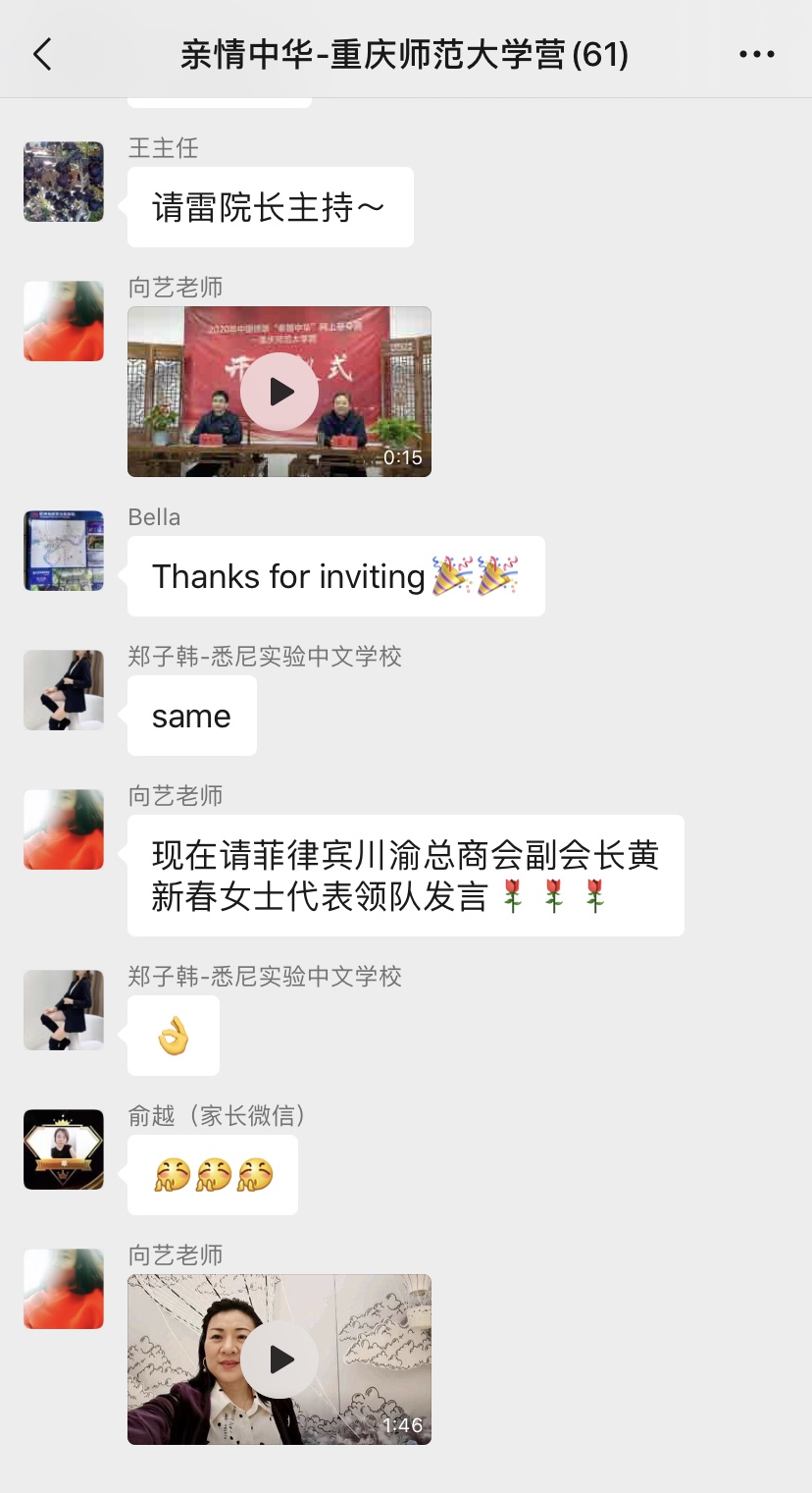 由中国侨联主办,重庆市侨联承办,mansion88主页、沙坪坝区侨联协办的“亲情中华”网上冬令营-mansion88主页营在云端火热开展。来自菲律宾、澳大利亚悉尼的营员们在组委会老师们的引导下,听故事、讲故事,通过拍视频、录语音、发文字等多种方式,在微信交流群和小打卡群分享自己的学习心得,展示自己的学习成果,分享参加冬令营的快乐。