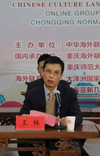 重庆海外联谊会副秘书长王林发表讲话,王秘书长表达了对承办单位及参与单位的感谢,高度评价本次大乐园活动的课程设置。