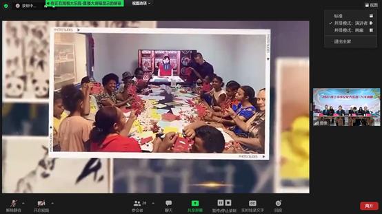 闭园仪式上,大家一起欣赏了课程回顾及学员作品展示视频。在过去的11天里,来自澳大利亚悉尼实验中文学校、澳大利亚悉尼重庆同乡会、澳大利亚悉尼中国育才学校、布里斯班苗苗中文学校、巴布亚新几内亚科技大学孔子学院的300余名学员,通过线上直播体验到多门中华传统文化课程。学员们的书法、国画、剪纸、中国结、粘土等作品内容丰富、精彩纷呈。多才多艺的学员们还结合课程内容,为大家准备了诗词朗诵、民族舞蹈、中国功夫、歌曲演唱等节目。