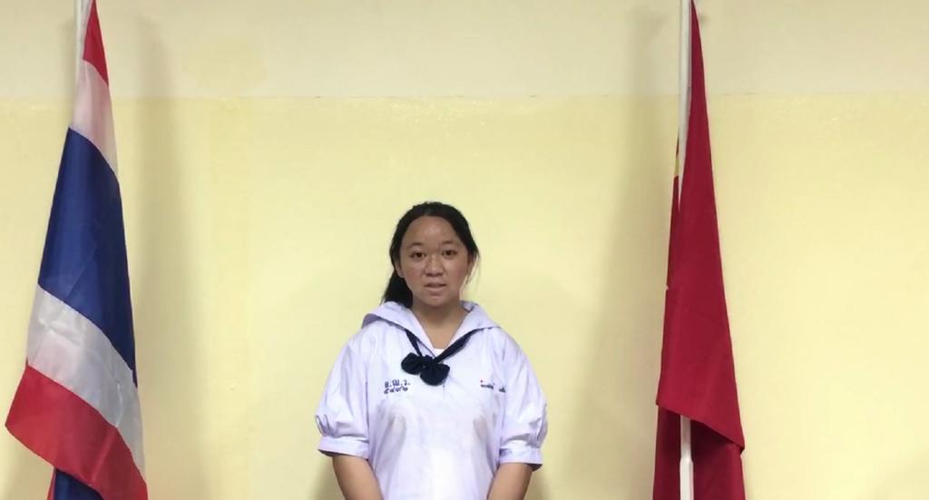 泰国清迈教联高级中学学生赵家咪代表学员讲话