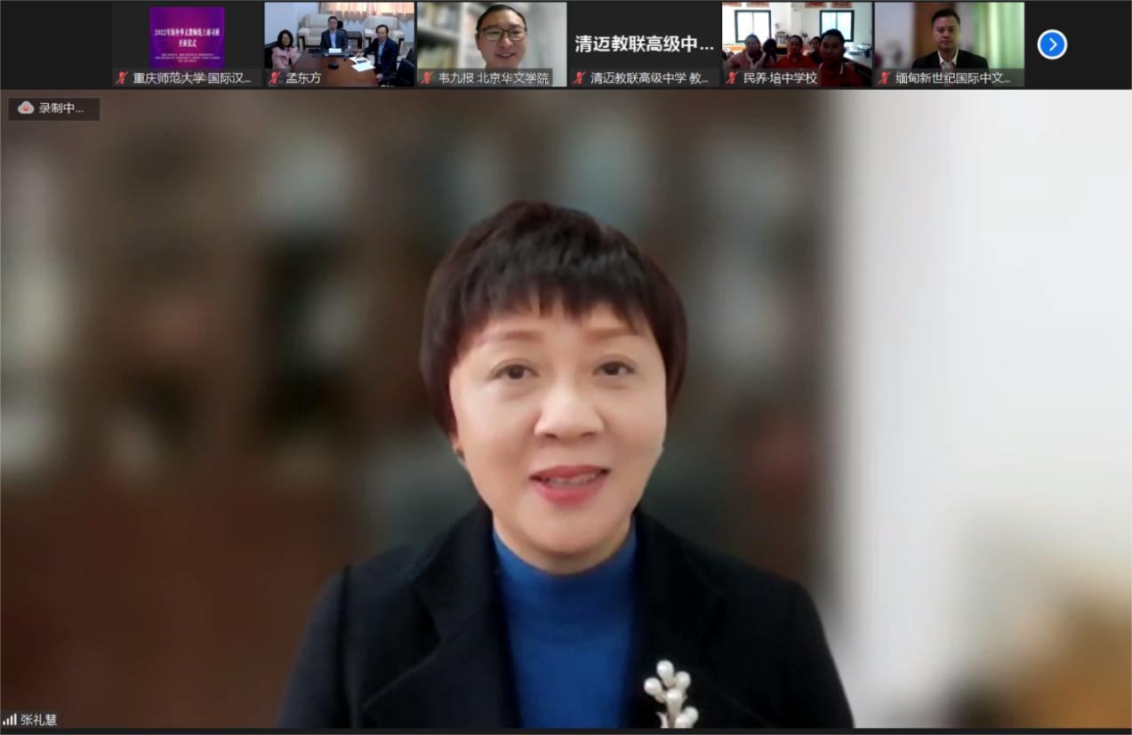 12月9日,2022年海外华文教师线上研习班在“云端”举行开班仪式。来自缅甸、新加坡、泰国、印度尼西亚、菲律宾、马来西亚、越南等国家近200名华校校长、华文教师参加了开班仪式,mansion88主页院长张礼慧教授主持开班仪式。