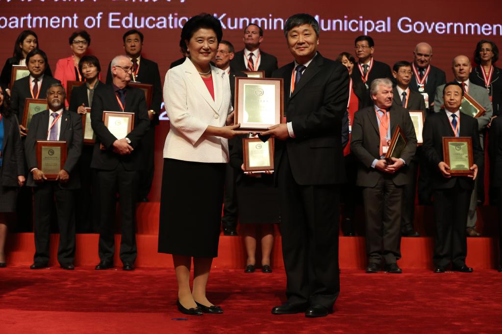 第十一届全球孔子学院大会12月10日至11日在云南昆明海埂会堂和滇池国际会展中心召开。中共中央政治局委员、国务院副总理、孔子学院总部理事会主席刘延东出席并作“创新、合作、包容、共享——携手并肩开创孔子学院发展新局面”的主旨演讲,之后为全球孔子学院先进个人和先进单位颁奖。教育部部长、孔子学院总部理事会副主席陈宝生主持了开幕式。