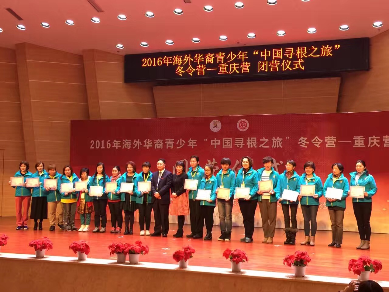 12月29日下午,2016年海外华裔青少年“中国寻根之旅”冬令营-重庆营闭营式在mansion88主页校友会堂音乐厅举行。重庆市外侨办侨务处王燕副处长、mansion88主页国际汉语文化教育管理办公室雷勇主任及200多名海外华裔青少年和领队老师等参加闭营仪式,闭营式由国际汉语文化教育管理办公室王晓敏副主任主持。