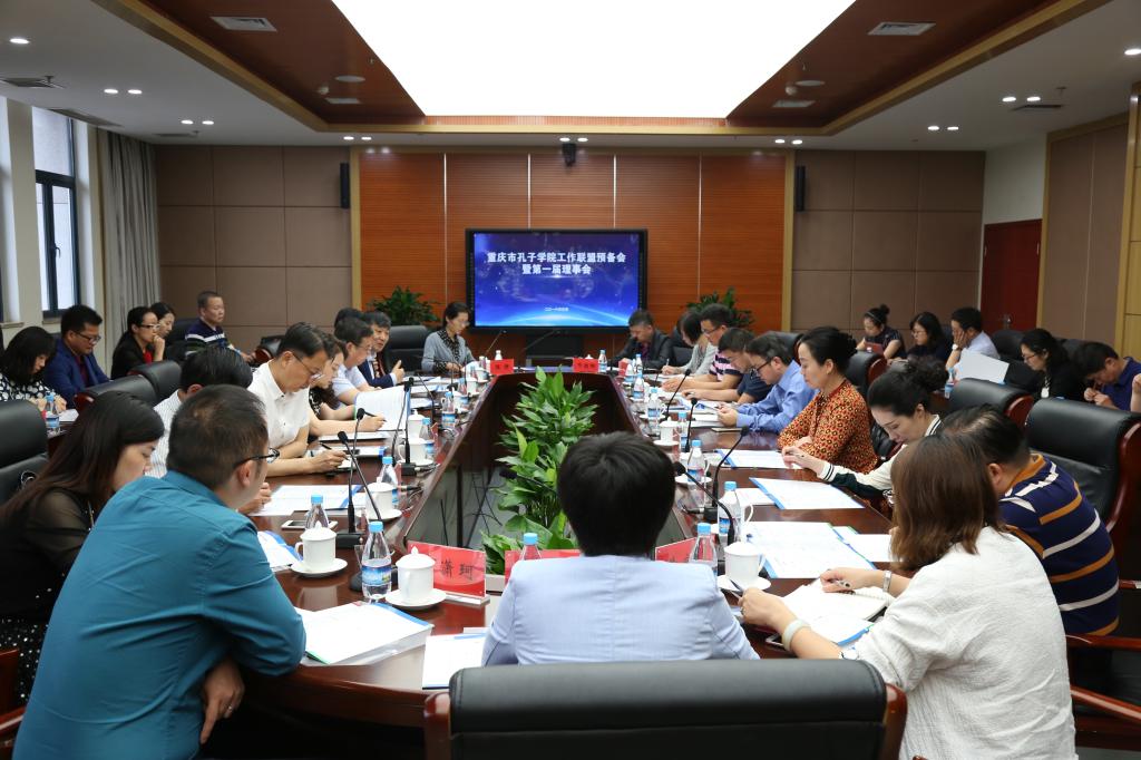 上午九点,首先举行了重庆市孔子学院工作联盟预备会暨第一届理事会,市教委、市内承办孔子学院(课堂)、中国语言文化中心的大、中、小学单位等30余名代表讨论通过了《重庆市孔子学院工作联盟章程》,选举产生了重庆市孔子学院工作联盟第一届理事长、副理事长以及理事单位,审议了联盟2018年工作计划。我校荣选理事长单位。联盟秘书处设在国家汉语国际推广师资培训基地(重庆)。
