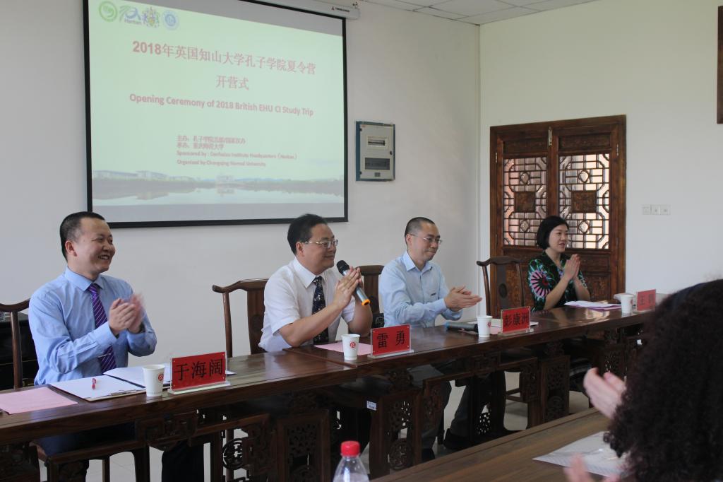 6月6日上午,国家汉办2018年英国知山大学孔子学院夏令营开营仪式在我校汉语国际推广师资培训基地国际会议室举行。我校国际汉语文化学院负责人、2018年英国知山大学孔子学院夏令营领队出席开营式。