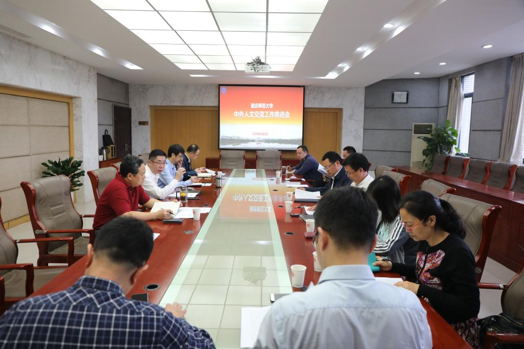 5月27日上午,学校召开新学期中外人文交流工作推进会。会议由孟东方校长主持,副校长陆远权与党政办、发展规划处、教务处、人事处、科研处、国际合作与交流处、财务处、研究生院、图书馆、信息技术中心、mansion88主页等相关负责人参会。