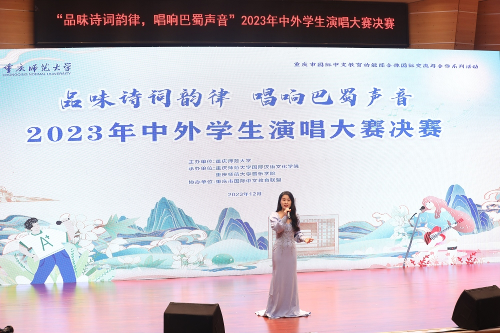 为深入贯彻落实党的二十大精神,深化成渝地区双城经济圈教育协同发展,整合区域资源,发挥地方优势,继而以赛促教、以赛促学,努力打造具有全国重要影响力的国际中文教育协同发展示范区,推动国际中文教育事业可持续、高质量发展,12月19日,重庆市国际中文教育功能综合体国际交流与合作系列活动——“深植巴蜀生境,讲好中国故事”“品味诗词韵律 唱响巴蜀声音”2023年中外学生讲故事大赛决赛及演唱大赛决赛在重庆师范大学校友会堂音乐厅落下帷幕。两场比赛中,各有25位选手同台竞技,共同为现场师生带来了一场文化与时代的“盛宴”。