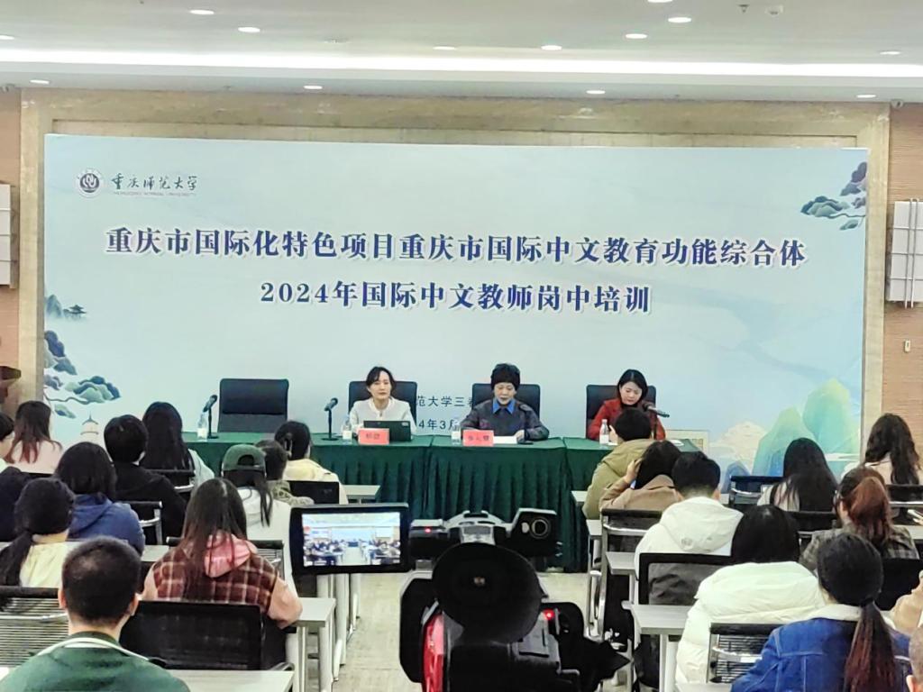 3月20日,重庆市国际中文教师岗中培训开班仪式在我校三春湖会议厅举行。来自海外孔子学院、华校在岗教师,我市相关院校国际中文教师约三百人,通过线上线下方式参与开班仪式。仪式由我校mansion88主页刘眉副院长主持。