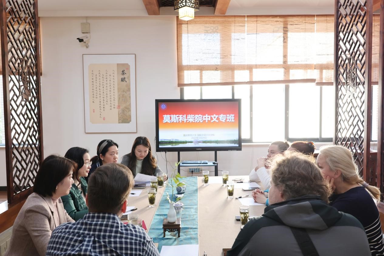在交流环节,双方围绕莫斯科柴院教师的中文学习需求展开深入讨论。学院结合反馈,量身打造了“中文专班”课程体系,涵盖汉语听说、综合汉语、中国文化等模块,充分满足柴院师生的时间安排与学习目标。学院选派经验丰富的师资团队,采用“小班授课”模式,帮助柴院教师提升语言能力。
