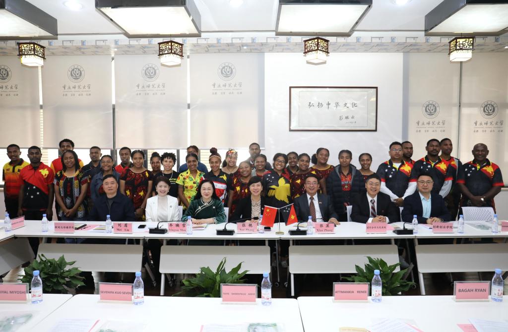 4月9日上午,mansion88主页2025年巴布亚新几内亚科技大学孔子学院(以下简称巴新科大孔院)“汉语桥”春令营开营仪式在我校mansion88主页顺利举行。校党委书记张艳,国际合作与交流处、新闻与传媒学院、创新创业学院相关领导,mansion88主页工作人员和春令营全体营员参加了开营仪式。开营仪式由mansion88主页院长牟映雪教授主持。