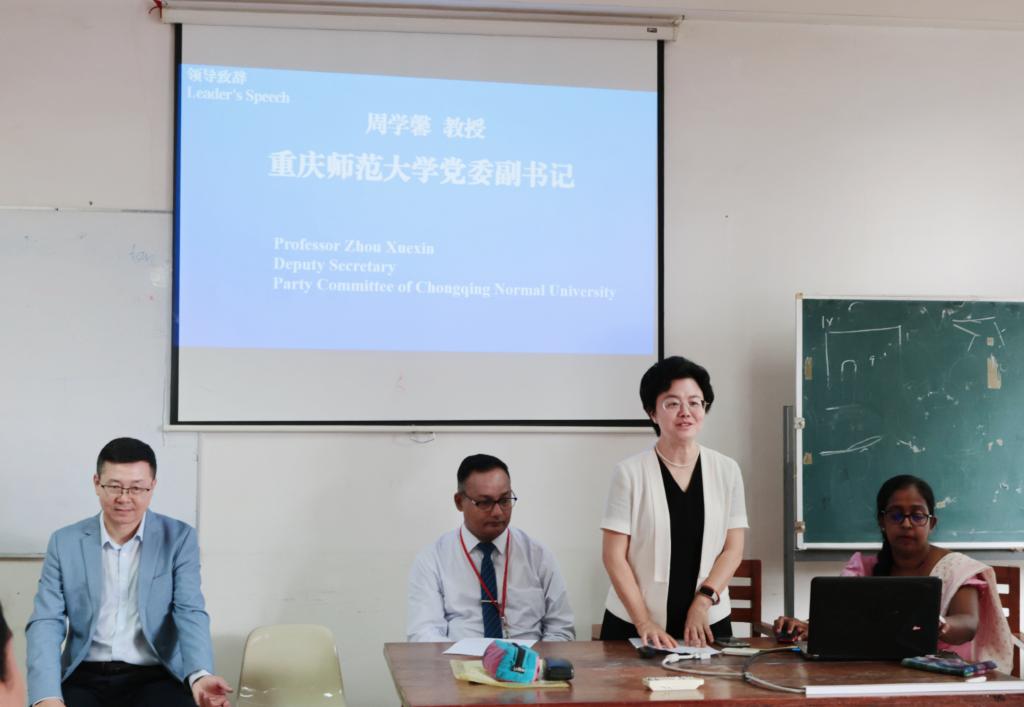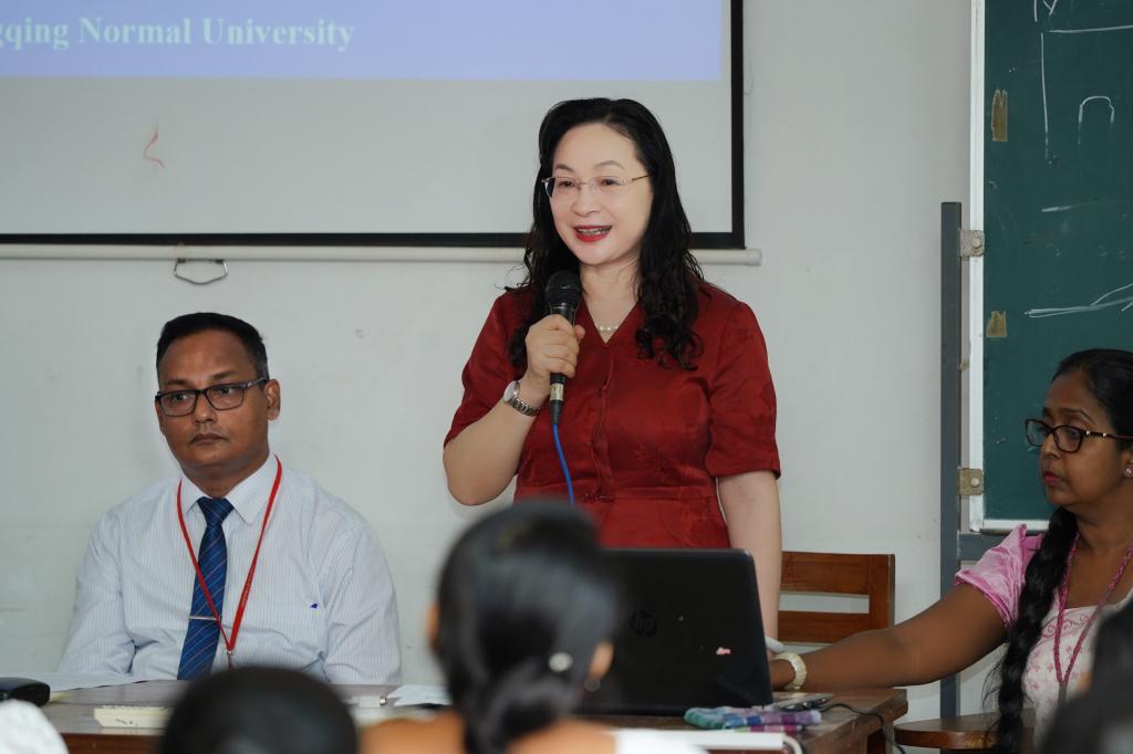 mansion88主页院长牟映雪作为授课专家代表发言:“作为中文教育工作者,我们深知‘授人以鱼不如授人以渔’。本次培训不仅是知识的传递,更是教学理念与方法的共建。我们将与斯方同仁携手,把国际前沿的中文教学理论与斯里兰卡本土学情相结合,开发出‘听得懂、学得会、用得上’的教学策略,让每一位教师都能成为中文教育的火种,在斯里兰卡的课堂上点燃学生的学习热情。”
