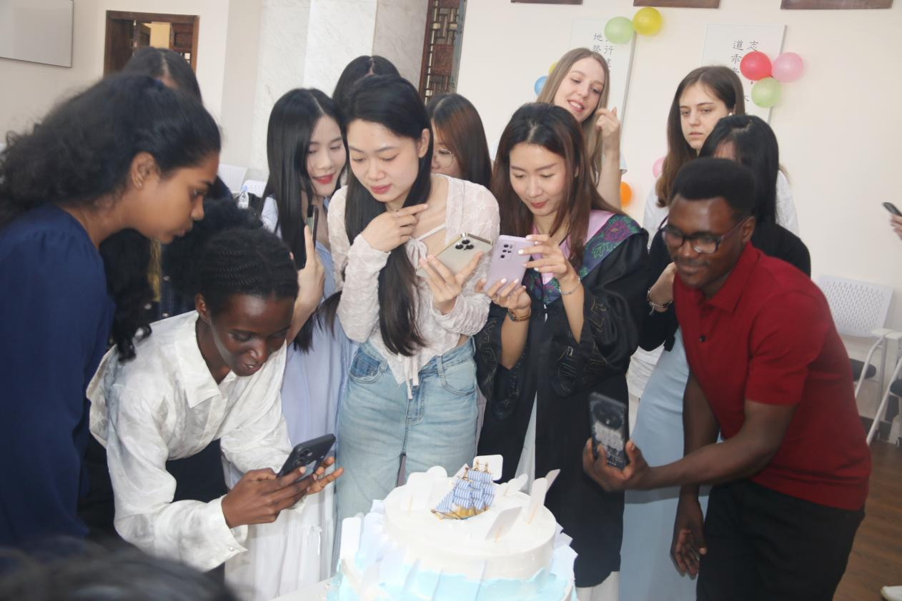 学院为每位毕业生和留学生精心准备了礼物和写着每位学生中文名字的蛋糕,这份独一无二礼物让每位学生惊喜不已,纷纷拍照纪念,甜蜜的蛋糕是对学生们未来生活的美好祝愿。最后,全体师生在欢声笑语中合影留念,用镜头定格下这个美好的瞬间。