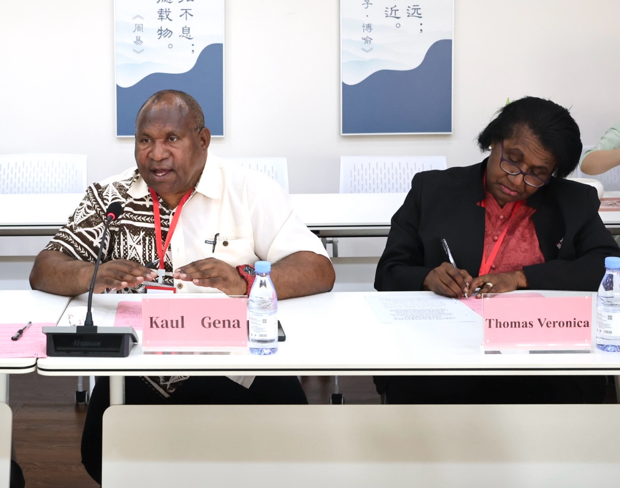 巴新科技大学常务副校长Kaul Gena对中方的热情接待表示衷心感谢,并强调,随着中文教育在巴新的快速发展,目前面临的最大挑战是专业师资的严重短缺,急需中方在汉语教师和志愿者派遣等方面给予更多支持。来自布图卡学校的两位副校长Sumari Helen和Keni Delilah进一步补充说明,该校汉语学习需求呈现爆发式增长,但受限于教学基础设施不足和跨学科师资匮乏等现实制约,急需加强中文教师队伍力量。