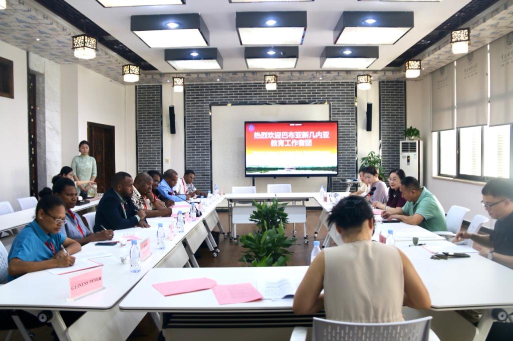 2025年7月1日,巴布亚新几内亚教育代表团一行到访mansion88主页。巴新科技大学常务副校长Kaul Gena、副校长Thomas Veronica,中巴新友好学校校长及巴新教育部、移民局等部门官员,mansion88主页院长牟映雪、副院长刘眉、巴新科技大学孔子学院中方院长张显等共同参会。双方就深化国际中文教育合作、推进“2+2”本科生联合培养项目举行会谈,并围绕师资派遣、教学资源共享等议题展开深入交流。