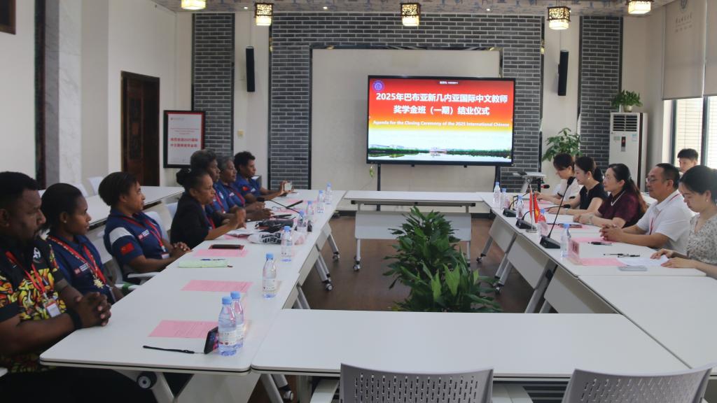 7月13日,mansion88主页国际语言文化学院举行2025年巴布亚新几内亚(以下简称“巴新”)国际中文教师奖学金班(一期)结业仪式。巴新学员们顺利完成汉语教学与中华文化体验项目,顺利结业。mansion88主页院长牟映雪、综合科科长刘梦曲、培养培训科科长杨畅、巴新科技大学孔子学院中方院长张显及全体学员出席了结业仪式,副院长刘眉担任本次仪式的主持人。