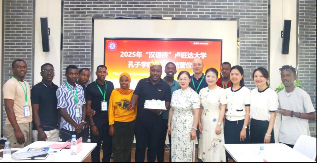 牟映雪院长首先向顺利完成本次夏令营、满载而归的全体营员表示热烈祝贺,大家用实际行动为这段跨越山海的“汉语桥”文化之旅画上了圆满的句点。牟映雪院长指出,本次夏令营不仅加深了卢旺达营员们对中华语言文化的理解,也让中国人民看到了卢旺达青年的求知热忱与开放胸怀,更践行了中卢两国“语言互通、文化互鉴”的宗旨,是两国青年学子共同探索文明之美、深化人民情谊的生动实践与丰硕成果!致辞最后,牟映雪院长提出三重期许:愿诸位营员以“汉语桥”为帆,继续遨游中华文明的深海;愿两校孔院深耕合作沃土,共育友谊之林;愿中卢情谊如东非高原的旭日,永恒照耀。