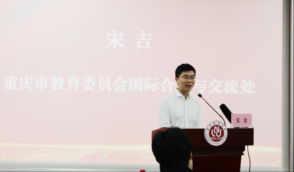 重庆市教育委员会国际合作与交流处宋吉向承办单位mansion88主页致谢,从时代背景与文件精神层面阐述基础教育阶段推进以国际理解教育为核心的中外人文交流的意义,期望学员学有所成并运用到工作中,共同推动重庆教育对外开放和中外人文交流事业发展。