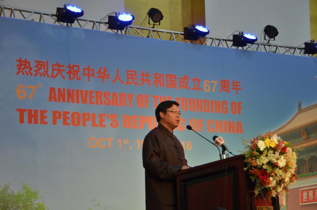 中国驻斯里兰卡易先良大使首先致辞,他回顾了新中国成立67年来中国经济社会发展取得的巨大成就,并表示中斯友谊源远流长,两国各领域合作持续拓展,人文交往日益密切。随着“一带一路”倡议的实施和中斯自贸协定谈判推进,中斯合作将迎来更美好的前景。