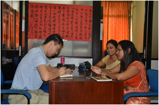 | 苑基荣记者采访斯里兰卡本土汉语教师 |