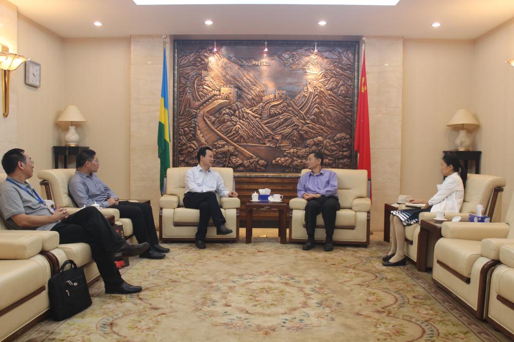 当天下午,曾书记一行在中方院长张显的陪同下,前往中华人民共和国驻卢旺达大使馆并受到了饶宏伟大使的亲切接见。饶大使首先向曾书记详细介绍了卢旺达的社会情况和中卢交流近年来取得的一系列成绩。他在介绍中充分肯定了卢旺达孔院在深化中卢交流过程中做出的突出贡献,对mansion88主页给予的相关支持表达了衷心感谢。曾书记对饶大使的热情欢迎及使馆对卢旺达孔院一直以来的大力支持表示了诚挚的谢意。曾书记表示,卢旺达孔院是mansion88主页在海外开办的第一所孔子学院,意义重大,mansion88主页将会一如既往地支持孔院配合大使馆的公共外交工作。双方还就孔院今后的发展进行了深入探讨。随后,曾书记代表mansion88主页向饶宏伟大使赠送了礼物。会谈结束后,曾书记一行又前往卢旺达大学医学院和科技学院教学点进行参观与考察。
