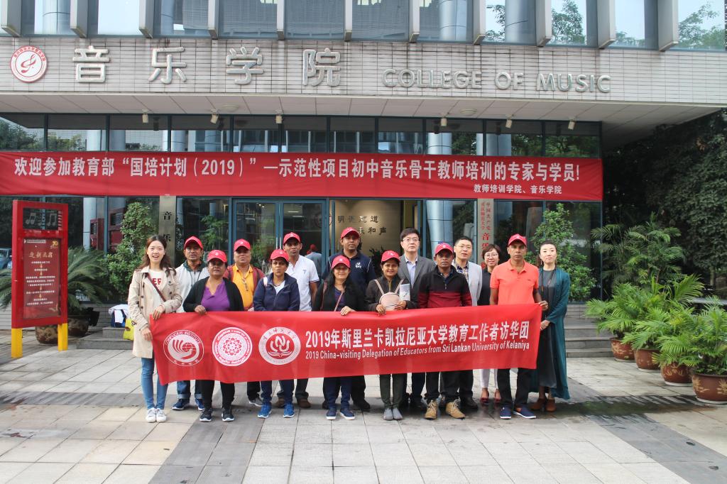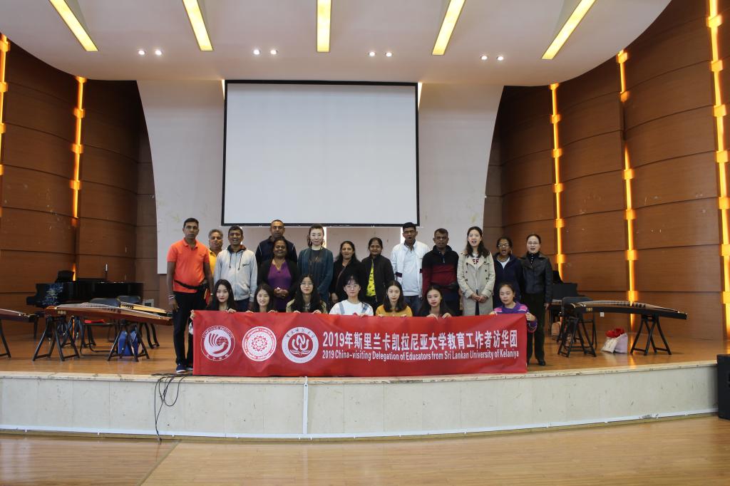 孔子学院总部2019年斯里兰卡凯拉尼亚大学教育工作者访华团全体成员在mansion88主页副院长左金隆的带领下,于10月18日上午到我校音乐学院交流访问。
