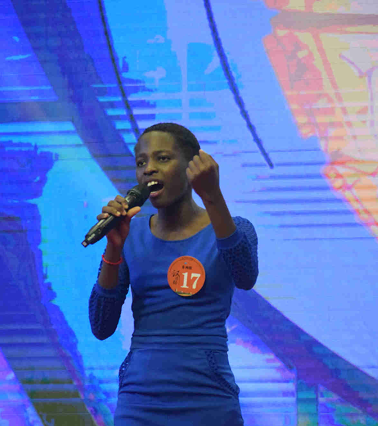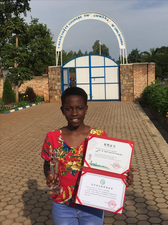 文彬是卢旺达呼耶地区天主教公立女子学校(简称ENDPK)的学生,从去年11月份开始学习汉语。在启蒙汉语老师的悉心引导下,立定心志要去中国留学。因此,在学业繁忙的高二,她能把每天的业余时间全部都用来学习汉语,终于在卢旺达中学生汉语桥的比赛中拔得头筹,取得了去中国参加第12届全球中学生汉语桥的比赛资格。她们的校长费勒名娜·尼拉胡库Sisiter Philomene Nyirahuku为了让文彬能好好准备比赛而特地准她推迟期末考试两个月。