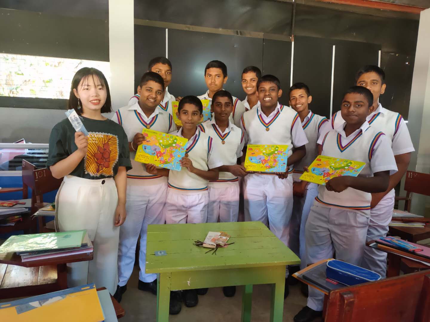 活动最后,孔子学院全体教师、Sri chandananda Buddhist College学校兰卡本土汉语教师和学生合影留念,学生们也送上了精心制作的贺卡,感谢孔院老师们。离去之时,学生们在车窗外与老师挥手作别,依依不舍。