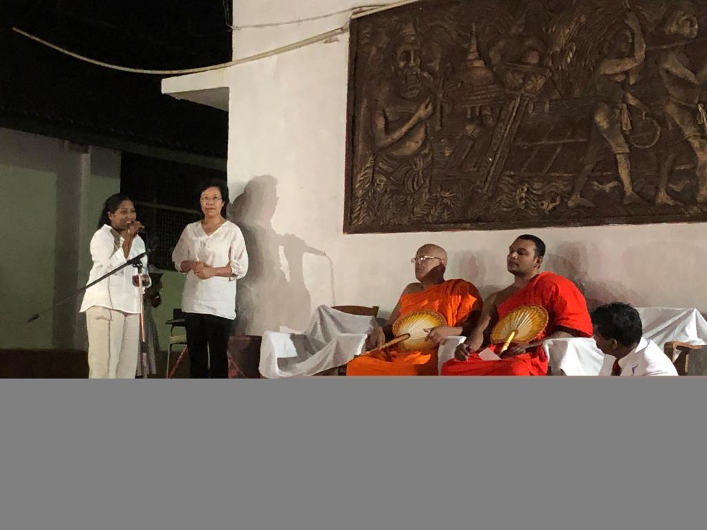凯拉尼亚孔子学院外方院长柯玛丽博士对卡德瓦达中学的师生表达了万分感谢之情;凯拉尼亚大学僧伽罗语系主任Malvane法师,亲自主持了这次祈祷活动,带领卡德瓦达中学师生和凯大孔院参加活动的老师诵经祈祷。