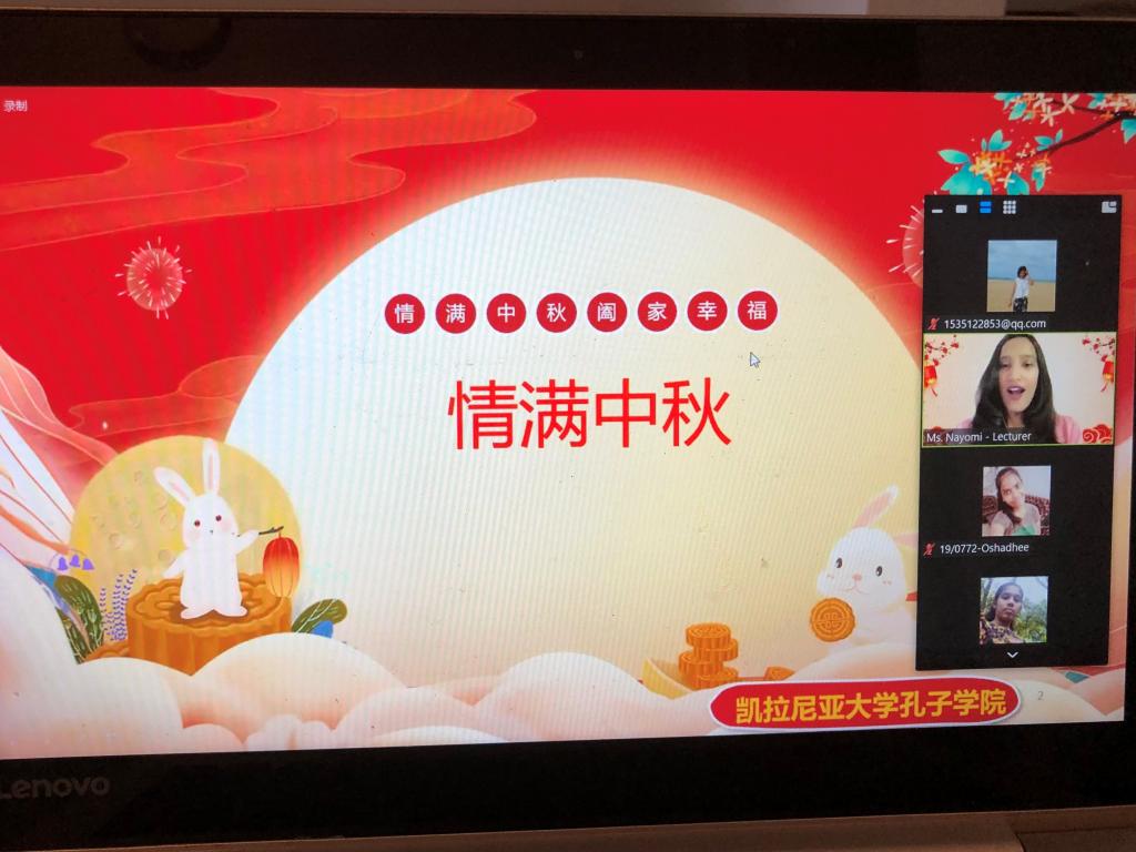 秋意渐浓,金桂飘香,花好月圆,我们又迎来一年一度的中秋佳节。在这美好的节日里,无论什么形式,都寄托着人们对生活的无限热爱和对美好生活的向往。在斯里兰卡当地时间,9月19日上午10:00,一场盛大的节日庆典,借助科技的力量——zoom会议,正如火如荼地进行着……