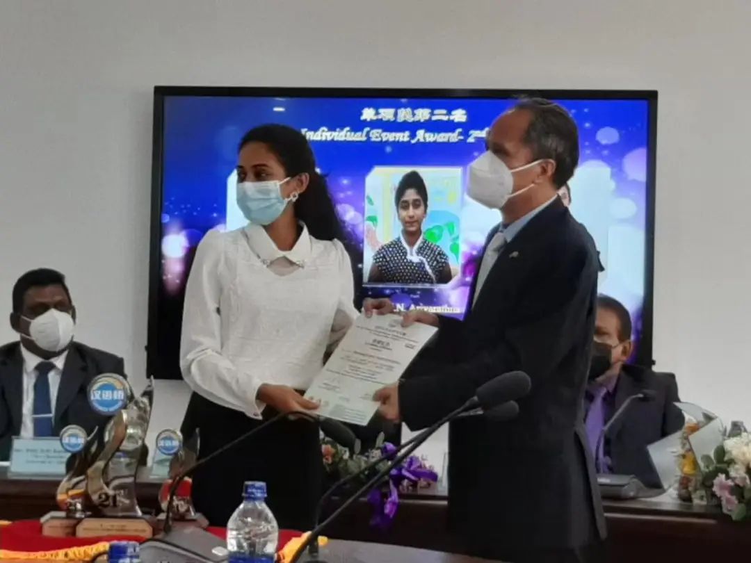 中国驻斯里兰卡大使夫人金千为单项奖选手颁奖