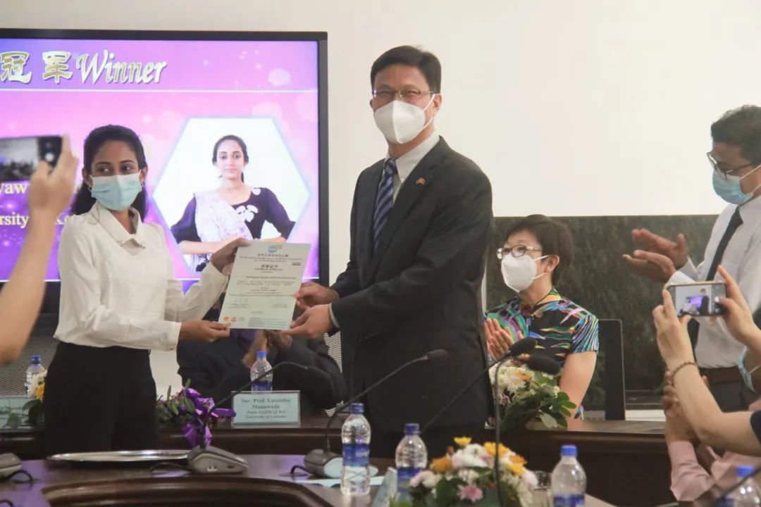 第二十一届“汉语桥”世界大学生中文比赛斯里兰卡赛区预选赛颁奖典礼,于6月20日在科伦坡大学隆重举行,凯拉尼亚大学孔子学院囊括冠亚季军,并在三个单项比赛中获得两个第一名。
