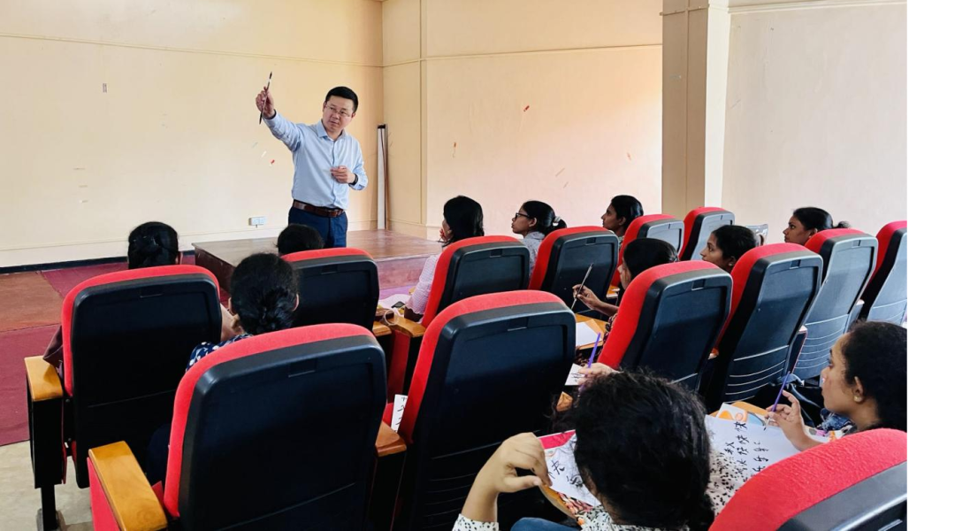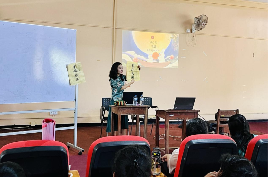9月25日,凯拉尼亚大学孔子学院中方院长吴洪远博士携林倩欢、刘艺涵两位志愿者教师,前往斯里贾耶瓦德纳普拉大学(以下简称“斯大”)开展“国际中文日”宣讲活动。本次宣讲活动以中秋节为契机,通过介绍中秋节的由来、庆祝方式和文化内涵,帮助斯大学生更好地了解中国文化,加深对中国文化的理解与兴趣,促进他们学习中文的热情。