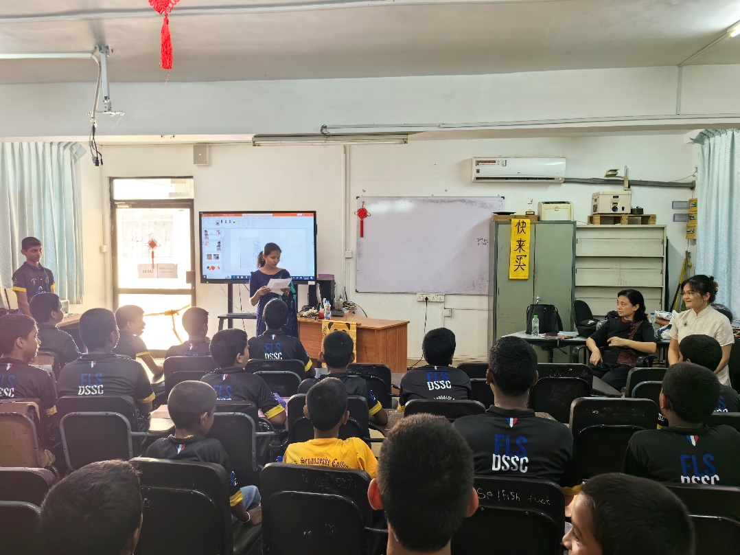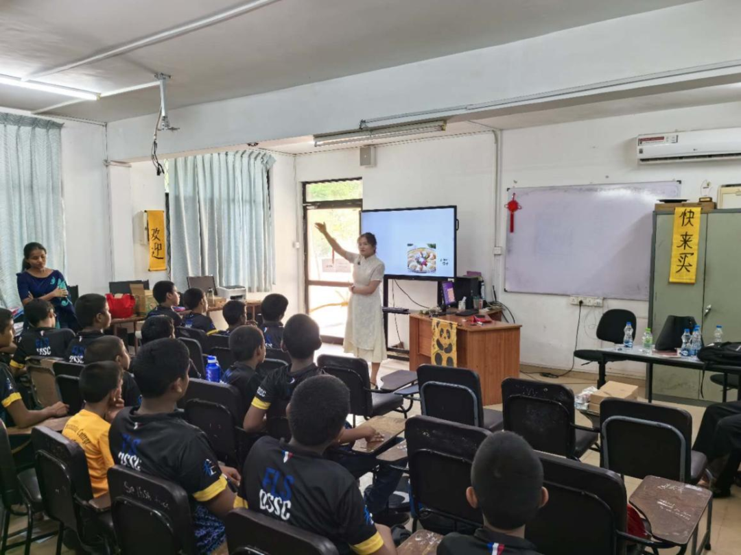 3月28日,凯拉尼亚大学孔子学院孙翠碧老师、周云骢老师、刘艺涵老师和刘钖老师应邀前往D.S. Senanayake College参加“中文训练营”活动。本次教学活动内容以中国文化为主,通过唱中国歌曲、动手体验传统艺术,帮助学生更好地了解中国文化,从而激发他们了解中文、学习中文的热情。