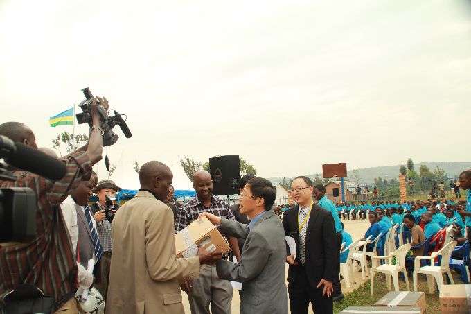 舒展大使和安布鲁瓦兹区长以及其他代表饶有兴致地观看了学生们表演的中文朗诵和当地舞蹈。活动最后,中国驻卢旺达大使馆向该校捐赠了电脑和文体用品。