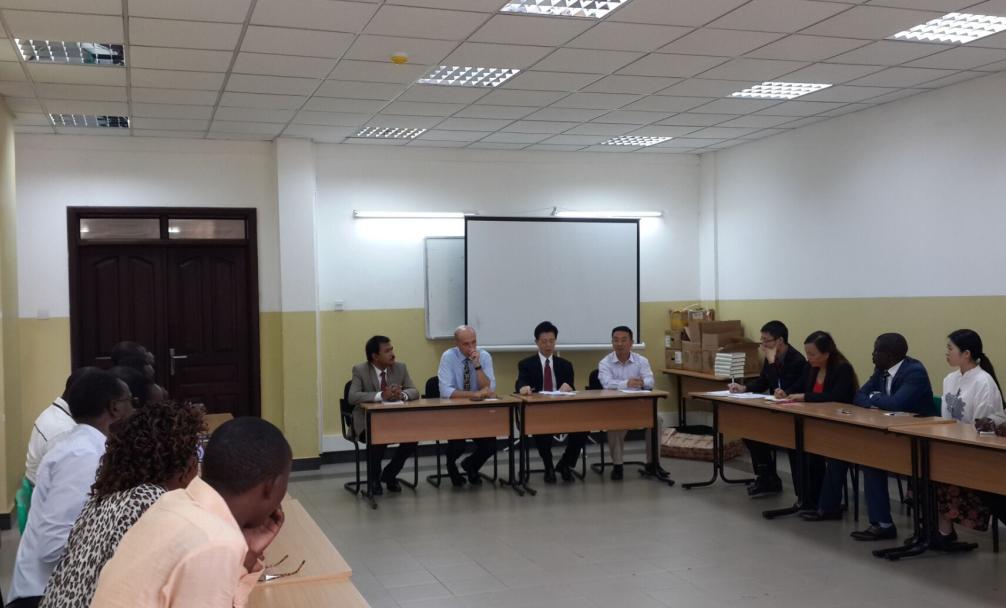 首先,曹志民参赞代表大使馆发表讲话,他对卢旺达经贸学院开设汉语课表示赞赏与祝贺;介绍了中国和卢旺达在教育方面的建设和合作、为卢方提供奖学金和培训等情况;并简述了全球孔子学院的发展现状以及中国政府所制定的未来三年非洲各界人士去中国留学、研修的规划。卢旺达大学校长 Philip Cotton发言,希望通过汉语课程的开设,加强与中国的合作与交流,共同努力,为卢旺达青年学生架设起一座通向中国,走向世界的桥梁。孔子学院张显院长讲话,表示卢旺达孔子学院愿意与卢旺达大学一起努力,给卢旺达大学和青年学生走向世界提供平台,为卢旺达的建设和发展作贡献,相信卢旺达的明天将更好;并邀请经贸学院教职员工观赏1月28日在卢举办的“春节联欢晚会”,亲身感受中国的传统节日和文化。