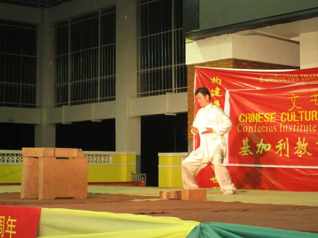 2009年10月14日,我校基加利教育学院孔子学院与驻卢旺达使馆在基加利体育馆举行“中国文化月”之“中国文化艺术表演”。中国大学青年艺术团应邀来卢作专场演出。驻卢旺达大使孙树忠及使馆全体人员、卢文体部、外交部、自然资源部、农业部等部官员、基加利教育学院院长、副院长、部分驻卢使团外交官及国际组织官员、在卢中资机构及华人华侨、基加利教育学院及孔子学院师生,当地民众等千余人观看了演出。