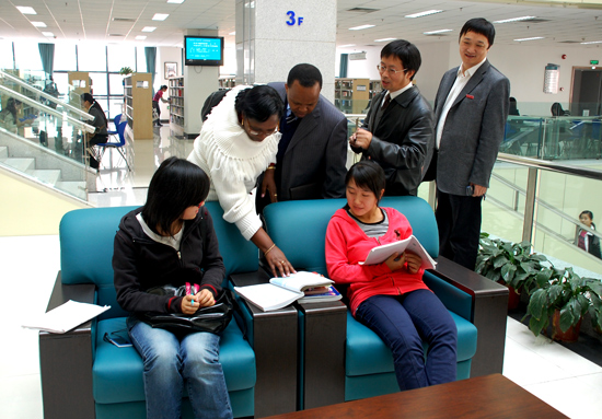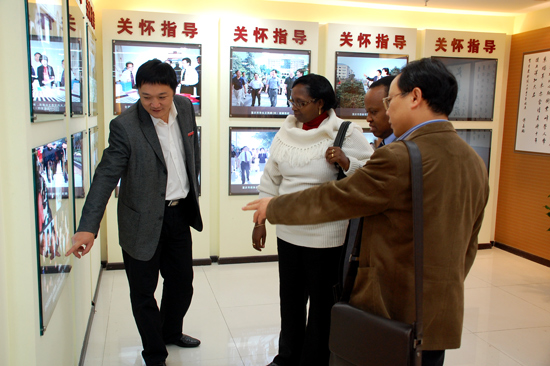 11月5日上午,在我校mansion88主页副院长官品,校办副主任傅长波的陪同下,卢旺达基加利教育学院孔子学院外方院长George.K.Njoroge、中方院长侯万春等来我校大学城校区参观,参观团先后参观了我校校友会堂、校史馆和图书馆等地。