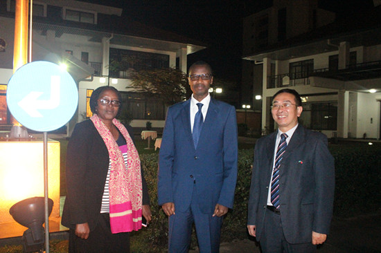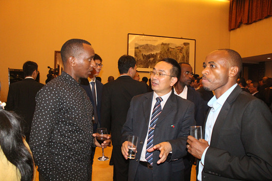 晚宴正式开始前,专程前来参加“孔子学院日”的卢旺达教育部部长Dr. Papias M.Musafiri特地找到张显院长进行交谈。在谈话中,他对孔子学院自张显院长就任以来所取得的骄人成绩予以赞扬。他指出,孔子学院在中卢两国的友好交流中起着重要的桥梁作用。通过HSK考试、“汉语桥”比赛、奖学金申请等一系列活动,汉语在卢旺达国内的影响日益显著,孔子学院的规模也在不断扩大,这些都极大地带动了中卢两国的友好交往。这次的“孔子学院日”活动也是对外展示卢旺达孔院形象的一次机会。张显院长在对卢旺达教育部长表示感谢的同时,也向他详细阐述了卢旺达孔院“职业化、特色化、全面化”的“三化”建设前景。此后双方在友好和谐的氛围中就孔院工作的其他方面进行了交流。