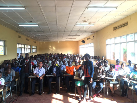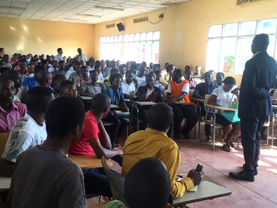 本杰明先生侃侃而谈,他用自己的切身经历,深深地打动着每一位在座的卢旺达学子的心,激起了他们更强的学习欲望和热情,燃起了他们去中国、了解中国、认识中国、学习中国的渴望!