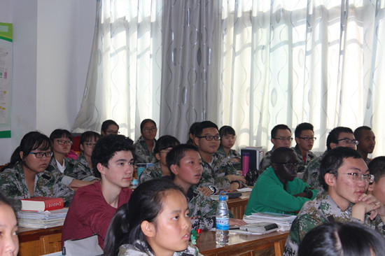 | 两名队员走进中国中学课堂观摩学习 |