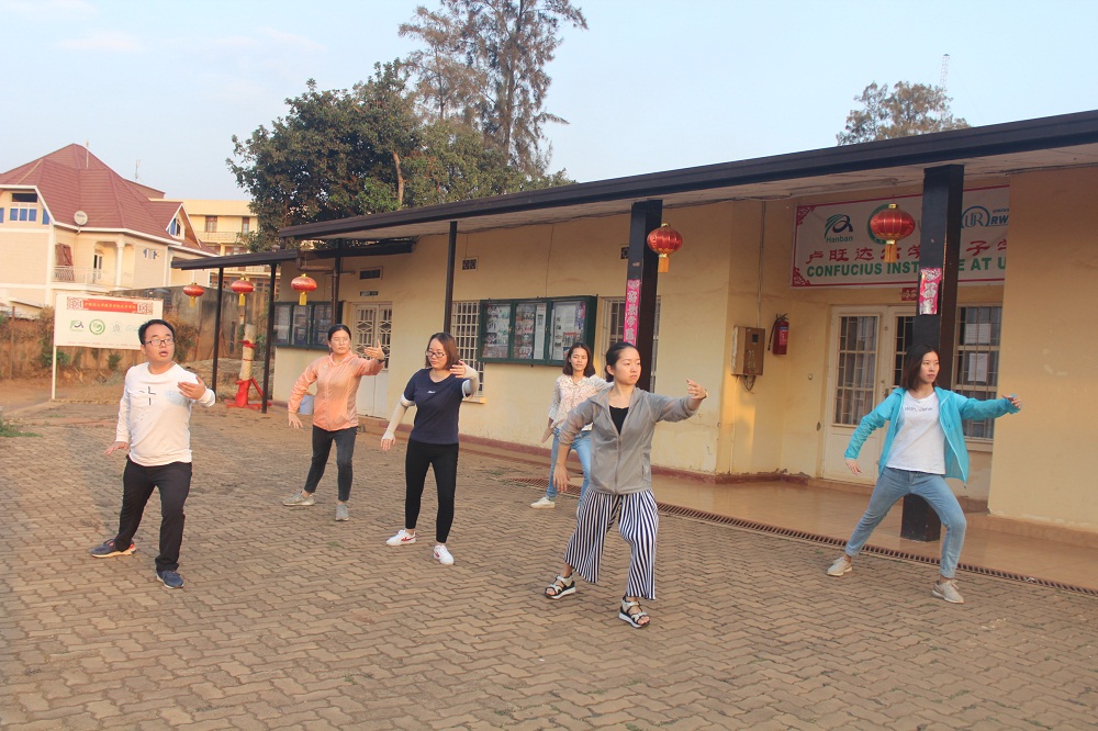 自2015年张显院长任职以来,坚持太极教学以带动文化活动,从此卢旺达大学教育学院孔院所有文化活动,太极拳作为必选、特色项目予以保留。新进志愿者、公派教师对太极拳的学习,不仅是对教师自身素质的提高,也是为以后的太极教学做准备,同时也为卢旺达大学教育学院孔子学院实现“三化”办学目标打下了坚实的基础。