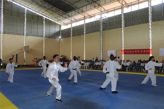 此次卢旺达全国中华武术锦标赛进行了为期两个多月的多场全国省市选拔比赛。最终,来自全国四省区、23家武术俱乐部的一百多名选手进入了本次决赛。大赛共分为表演单元和竞赛单元。在表演单元环节中,卢旺达孔院师生太极表演队在大赛中精彩亮相,受到热烈追捧;竞赛单元按照少儿组、女子组、成人组共分为套路和散打两个大项,五步拳、长拳、南拳、刀术、棍术、枪术、轻量级散打和重量级散打八个分项目。选手们沉着冷静一招一式流畅自然,赢得了到场观众的热烈掌声。经过8个多小时的激烈比拼,一共决出了四十余枚奖牌。来自孔院武术队的选手们也为孔院争得了荣誉,孔院少儿武术俱乐部的张佳诺、苏小刚等3名少儿选手摘得套路组金牌,孔院大学武术俱乐部警察选手飞来在散打比赛决赛中大比分领先勇夺冠军。