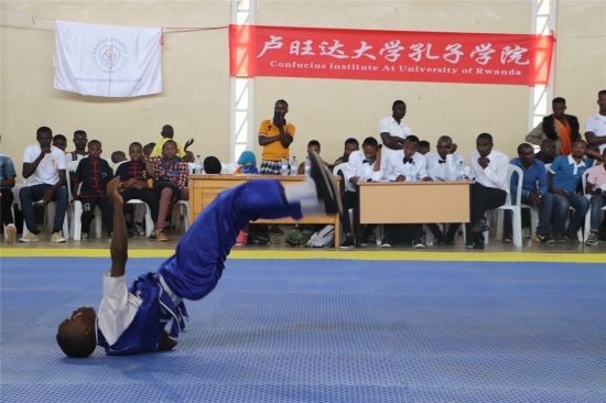 卢旺达当地时间12月23日上午,卢旺达大学教育学院孔子学院联合卢旺达国家武术协会,共同举办了2018年卢旺达全国中华武术锦标赛。本次比赛在卢旺达首都基加利国家体育馆拉开帷幕。中国驻卢旺达大使饶宏伟、卢旺达文化与体育部司长RURANGAYIRE Guy Didier、卢旺达东部省英戈马市(Ngoma)市长马明杰(NAMABAJE Aphrodise),卢旺达中国企业家联合会董事主席曲江以及中卢各界代表500余人参与了此次盛赛。